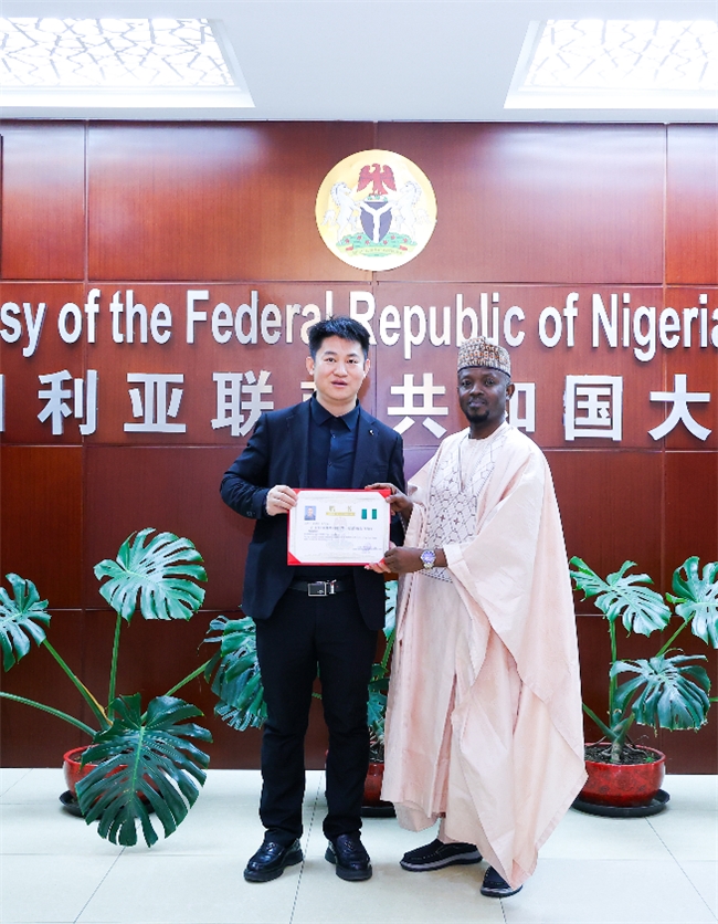 田鸿科获尼日利亚驻华大使馆特邀经济顾问