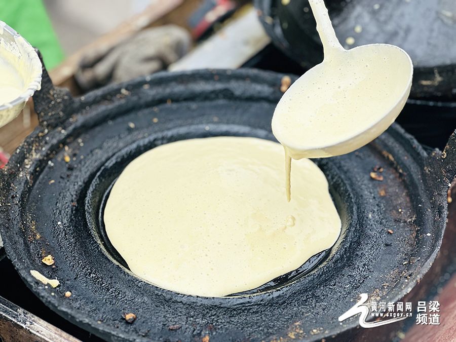 黄河新闻网吕梁讯(记者 刘凯丽) 清明时节,那熟悉的香气又弥漫在街头巷尾,那是我们深爱的特色小吃——摊黄。它由黄米面或小米面经过精心发酵,再加上碱面或小苏打,与水调和成白色糊状摊制成的薄饼。有时,人们还会加入一些糖精等甜味料,增添一丝甜蜜的味道。
