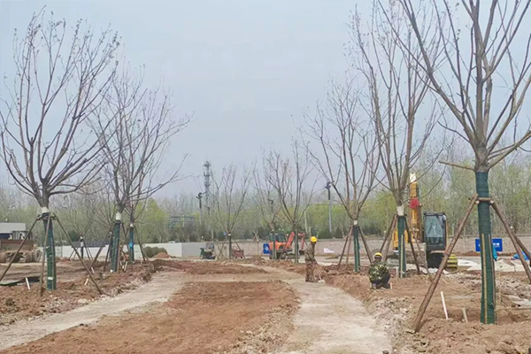 图为:工人们正在室外绿化作业