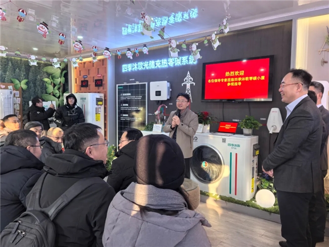1月14日,由中国节能协会热泵专委会组织的“中国严寒地区空气能热泵采暖示范项目”专家考察团也走进了四季沐歌空气能温暖驿站,展开了一场意义非凡的实地考察与交流活动。四季沐歌集团产品技术研究院副院长徐蒙向各位专家讲述了四季沐歌集团在严寒地区的应用案例及产品特色,其实一直以来空气能热泵作为一种高效、环保的供暖方式,其在严寒条件下的稳定运行与能效表现,是行业内外关注的焦点。
