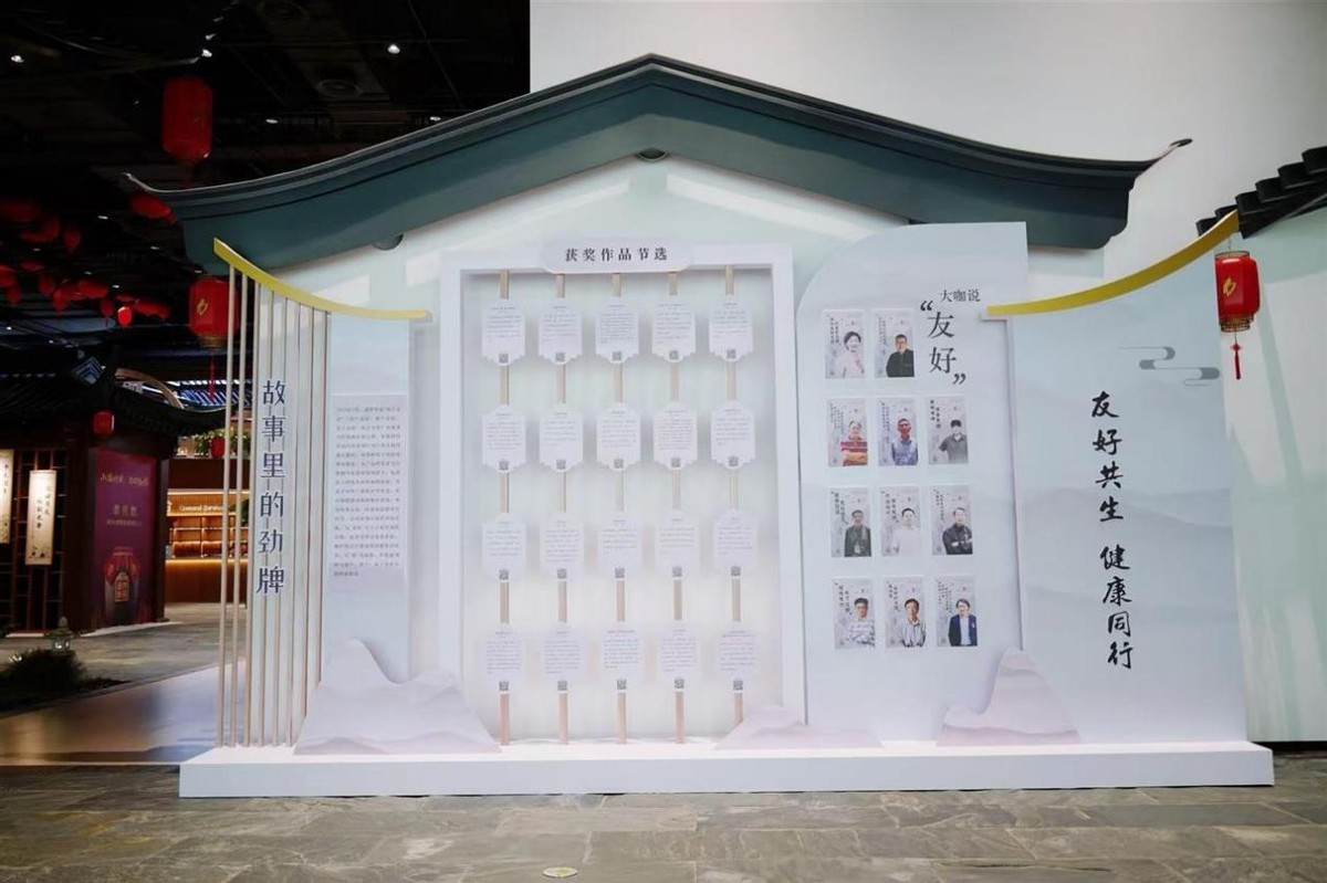 整个展区划分为五个有机联系的板块:企业文化区系统阐释企业四大战略基石和六大理念支柱;书画里的劲牌展现传统艺术视角下的品牌形象;诗歌里的劲牌呈现诗意化的品牌内涵;故事里的劲牌汇集大众创作的“友好”故事;时光里的劲牌则用一件件承载记忆的朴素物件串起企业的发展轨迹。五大板块相辅相成,共同构建了一个立体而生动的品牌文化图谱。