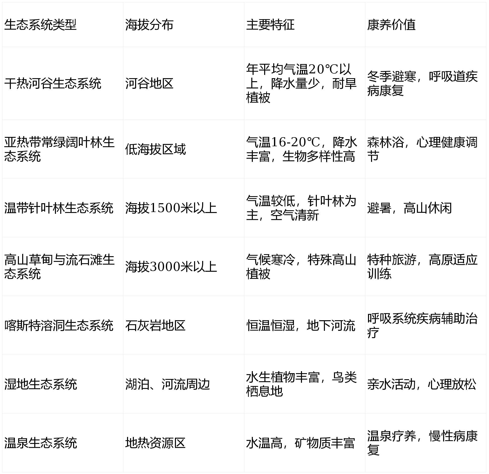 1. 生态资源禀赋。 评估城市的自然资源条件,如空气质量、水资源、森林覆盖率、气候舒适度等。例如:大理白族自治州依托“苍山洱海”的生态优势,成为“世界康养城市”试点。