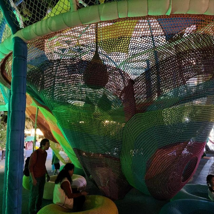 办完入店手续,姐妹俩迫不及待脱下从成都穿来的、略显厚重的外衣,像两只破茧而出的蝴蝶,翩然飞进了酒店的快趣儿童游乐园。那里,简直是个为童年定制的天堂。各种室内玩具,让她们轮番尝试,不想离去;彩色的丛林穿越-攀爬网像小山,她们手脚并用地征服它们;秋千荡起来,笑声就和海风一起飘得老高;跳跳床上,小小的身体弹起又落下,头发飞扬,仿佛每一根发丝都在快乐地舞蹈。最妙的还是那温水游泳池,像一块巨大的、颤巍巍的蓝宝石。她们看着蓝色的水波,强烈要求跳下去……姐姐灰灰说,在成都就想好了到三亚如何陪妹妹玩,荡秋千必须她亲自推动,不能高,也不能低,安全第一。简直就是大人说的话,名副其实的姐姐!