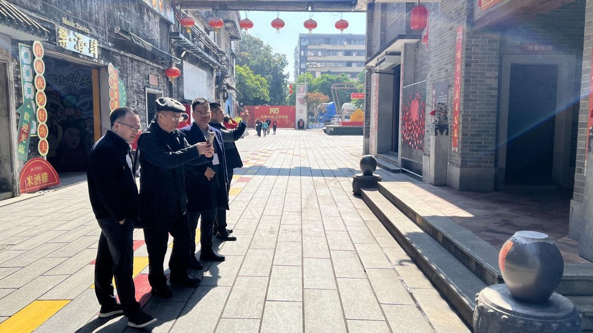 离开美术馆后,调研团队前往石湾玉冰烧的核心生产基地陈太吉酒厂。作为石湾玉冰烧的发源地,这里承载着近两百年的酿酒历史,厂区内的朱紫街更是藏着品牌发展的重要记忆。据介绍,朱紫街最早可追溯至宋朝,因街内人家以朱红为喜、紫气东来为吉而得名,清代道光十年陈太吉酒庄在此开张后,街内聚集茶楼、酒肆等业态,形成了闻名的“三太文化”——即陈太吉酒庄、太元茶楼、太平夜粥,成为当时石湾的商业核心。