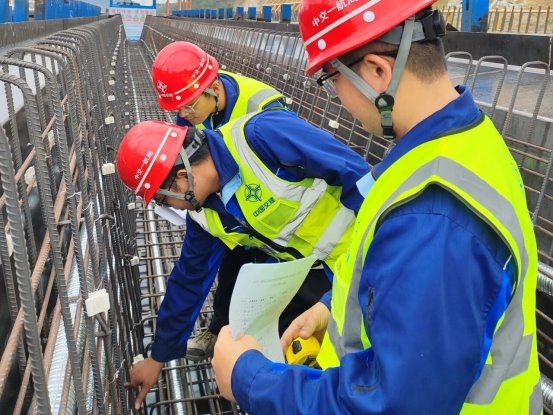 箱梁预制包括拼装模板、绑扎钢筋、浇注、振捣张拉等诸多环节,人为操作、外加剂含量、振捣时间等因素都会影响箱梁的成品品质。技术团队对隐患诱因进行全面排查后,将问题聚焦在外加剂上。朱其彬发现,外加剂配比与混凝土相容性较差造成混凝土出现离析,上部水泥浆量明显多于下部,使得上下层表面颜色产生显著的深浅差别。技术团队马上联系试验室与外加剂厂家优化配合比,消除了混凝土的离析现象,箱梁整体外观得到提升。
