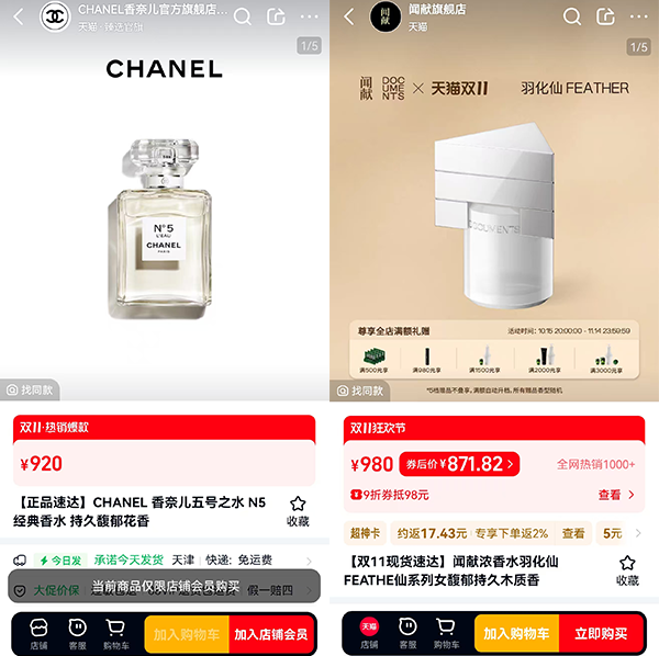 个别国货香水价格高于国际品牌(图片来源:天猫)